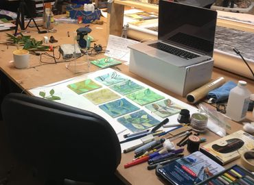 Everyone receives an individual kit of high-quality art supplies, paper, mats, botanical specimens, and more.